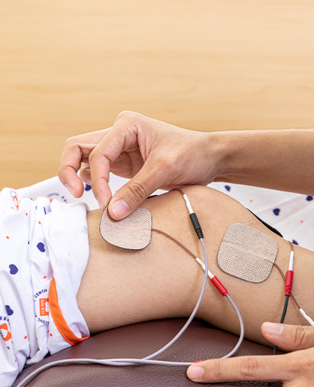 전기적으로 신경 및 근육을 자극하여 수축을 유도하는 치료로 통증을 완화시키고 근육을 강화시켜 줍니다.